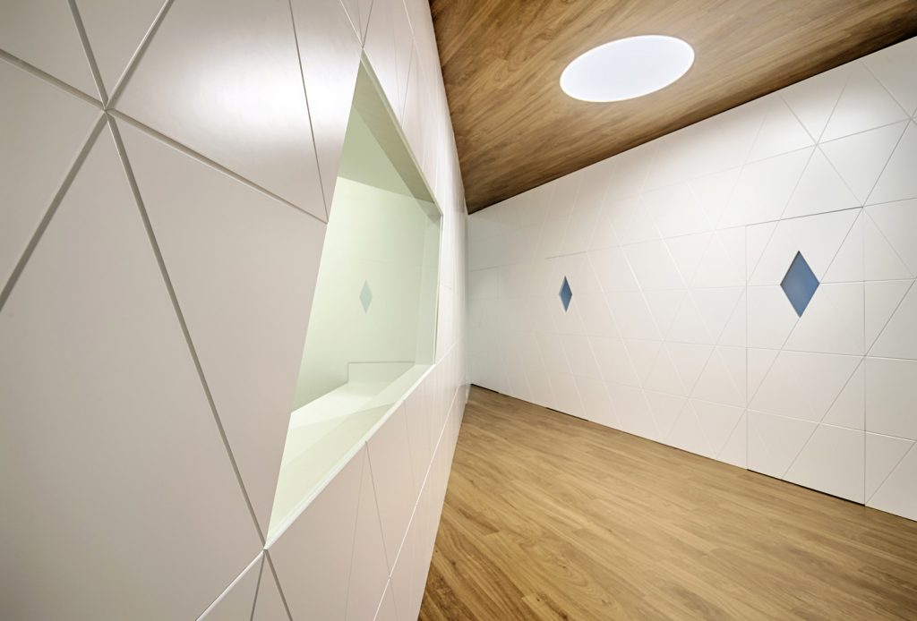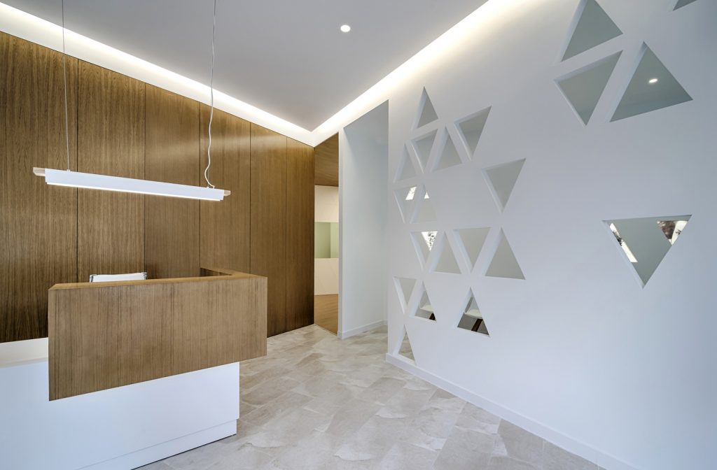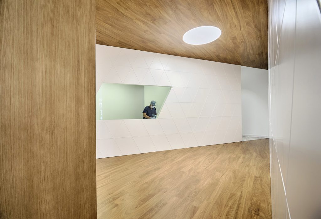 La confianza y la profesionalidad se refuerzan con la utilización de maderas que convierten un espacio (y un sector), en principio frío, en un cálido remanso de paz.