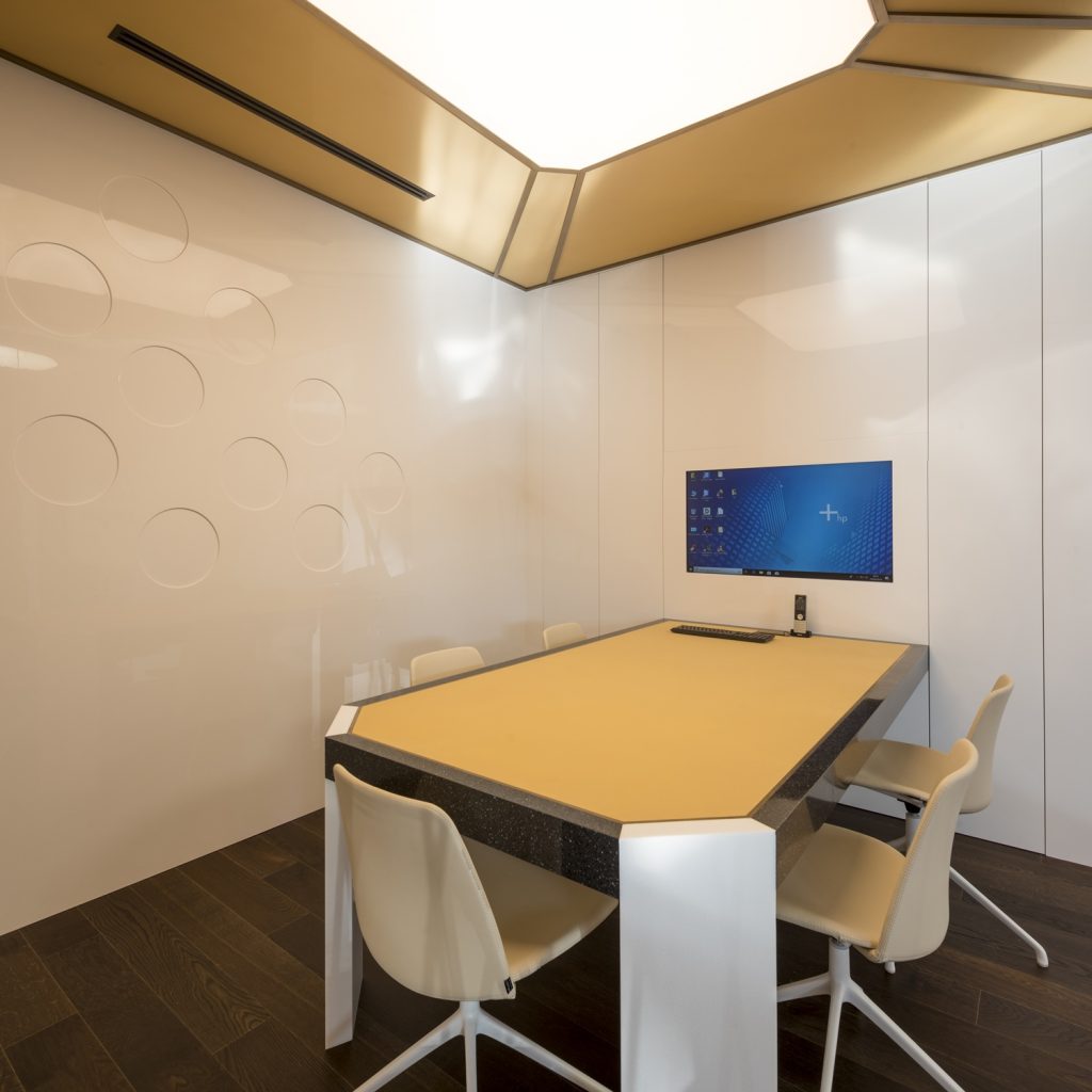 Nada ofrecería más seguridad a un temeroso viajero transatlántico a bordo de un barco a vapor que visitar la sala de calderas a pleno rendimiento. Esto es lo que hemos hecho en la sala de reuniones. Simplemente mostramos al cliente lo que podemos hacer por él para que la percepción se convierta en realidad, en una razón para creer enmarcada en un espacio que sorprende por su pulcritud tecnológica y la calidad y precisión de sus acabados.