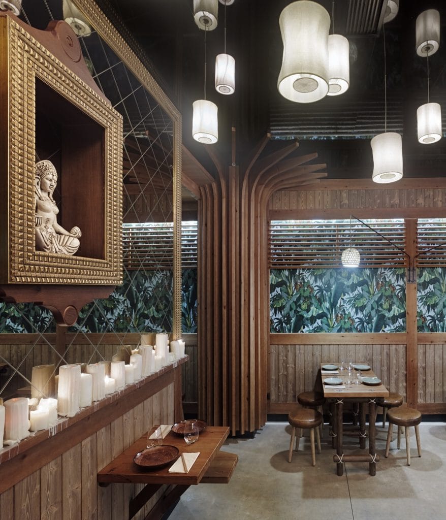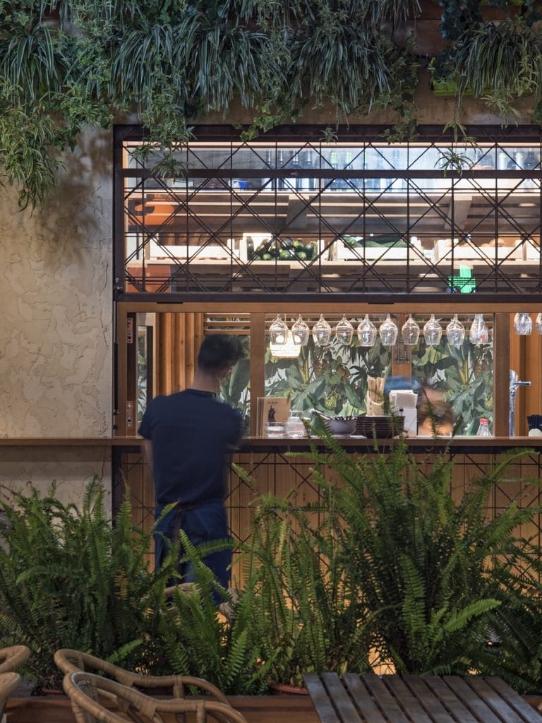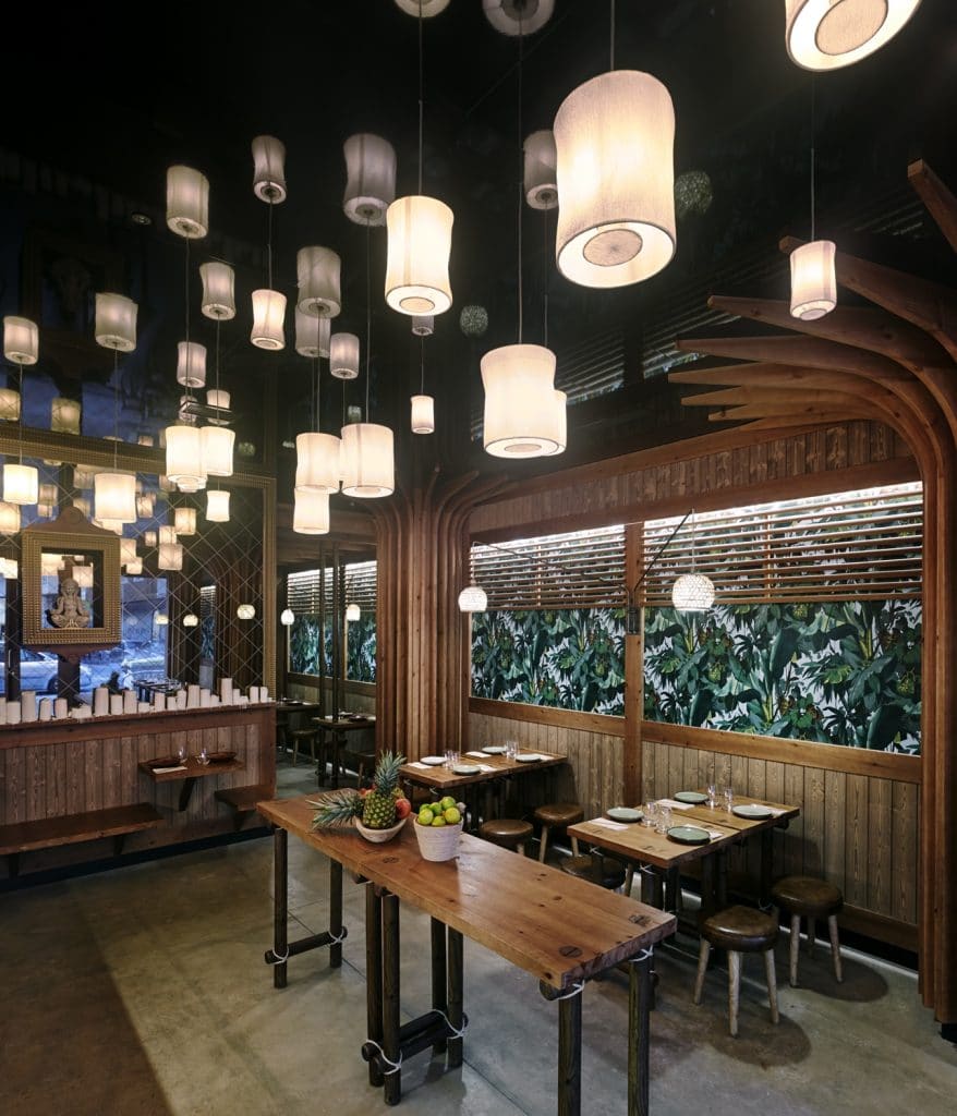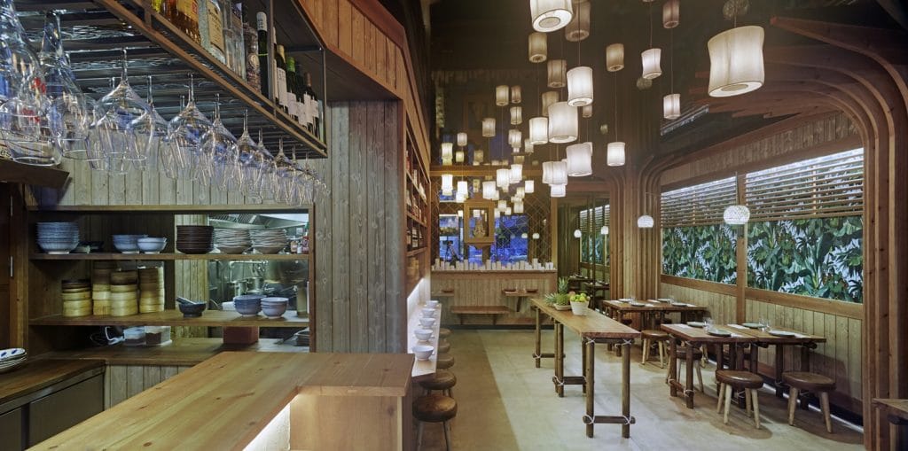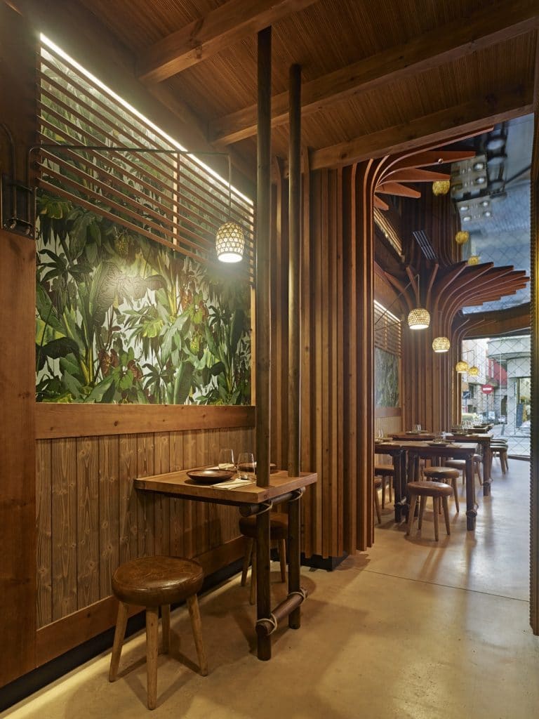 Asia debía protagonizar el espacio. Definimos una estética interior que trata de evocar la naturaleza virgen y bucólica de postal de viaje a Tailandia, por ejemplo, pero huyendo del lujo y acercándonos al street food.