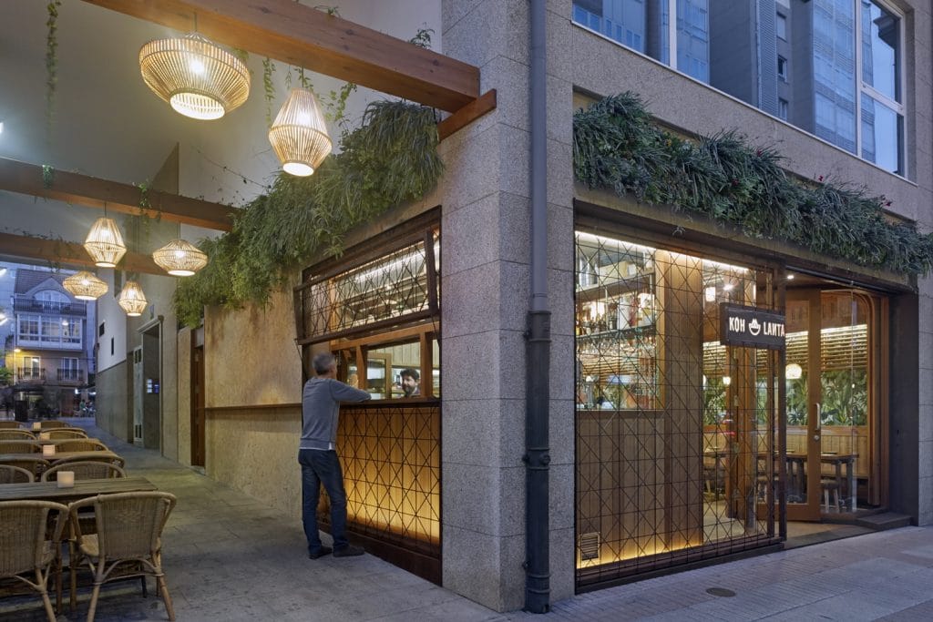 Se trata de una declaración de intenciones, poco más hay que explicar a los visitantes cuando ven el conjunto exterior y el nombre del local, Koh Lanta. Se hace patente que vas a comer fresco (vegetación), natural (madera), original (de origen: madera de bambú) y con ciertos toques desenfadados y gamberros (hierro, soldaduras).