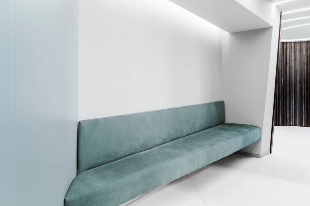 No es la primera vez que utilizamos la curva para resolver un espacio, pero si cabe tiene mayor sentido en una clínica de cirugía plástica, donde la curva es precisamente la principal herramienta de trabajo. El efecto de las formas orgánicas es beneficioso por partida triple. Por una parte, la singularidad del efecto refuerza la diferenciación competitiva, lo que a su vez compone un mensaje de marca relevante para el cliente objetivo y, por último, fortalece la percepción vanguardista y tremendamente profesional del Dr. Guilarte.