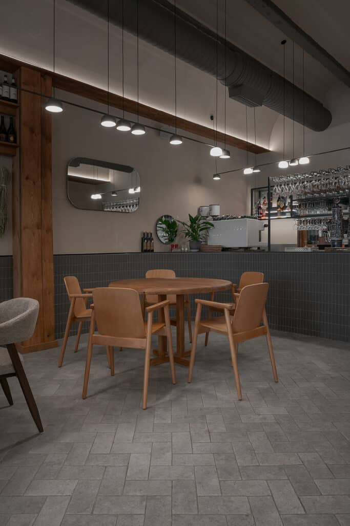 Y como siempre en nuestros proyectos, el diseño es belleza, sí, pero también estrategia. La circulación está pensada para que el equipo trabaje cómodo. Las mesas se adaptan a diferentes grupos y momentos del día. La fachada se ilumina con sutileza, para atraer sin gritar. Todo tiene un porqué. Todo suma a una experiencia.